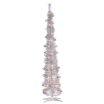 Adorn this silver artificial tinsel tree with beautiful ornaments for the best festive impact in your home.